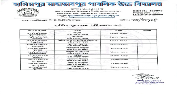 বাষিক মূল্যায়ন পরীক্ষ- ২০২৪